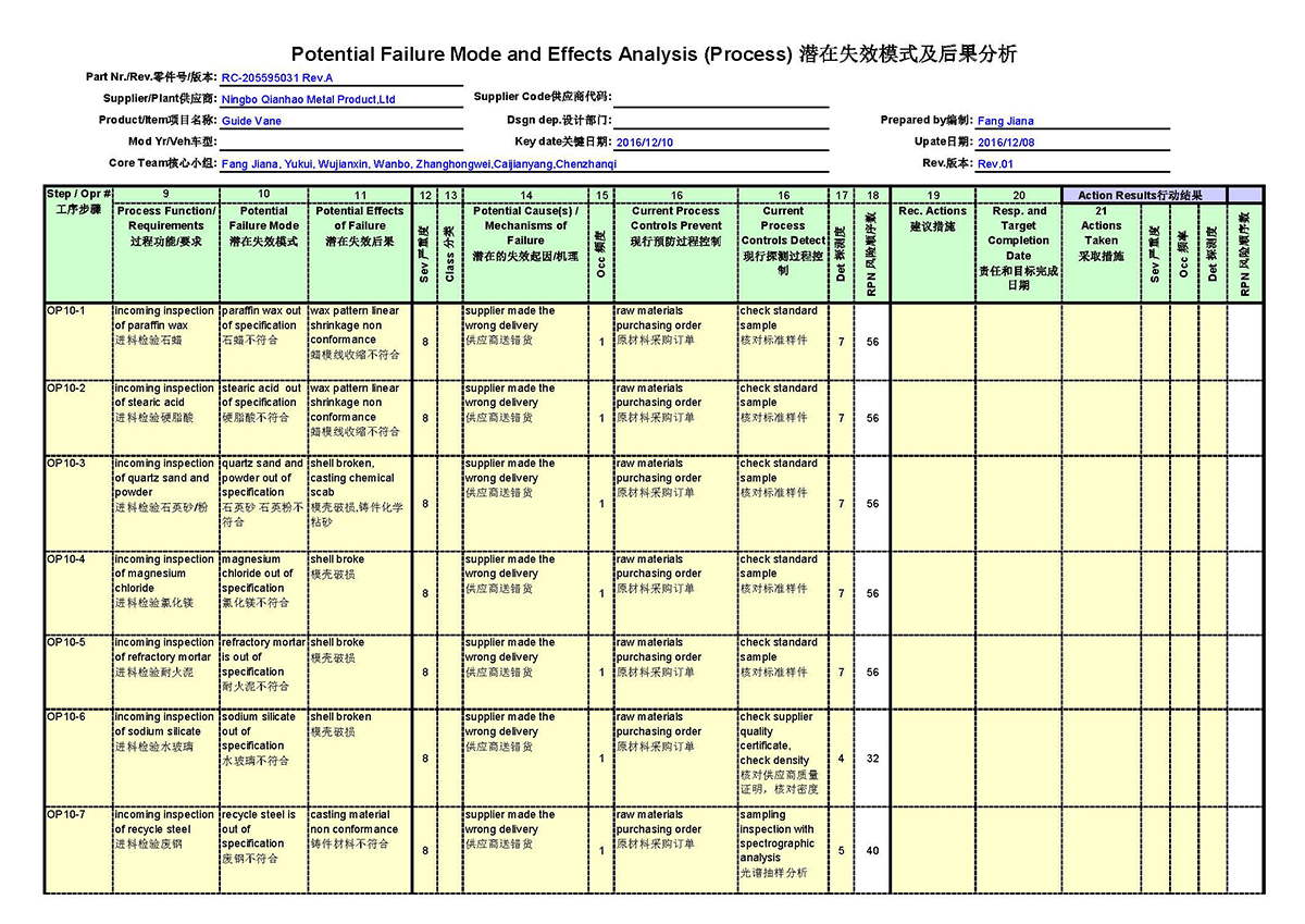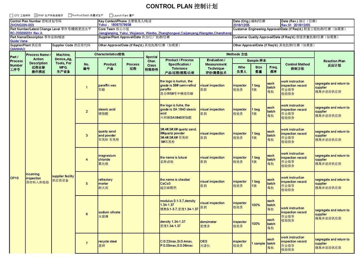 APQP - CASTING